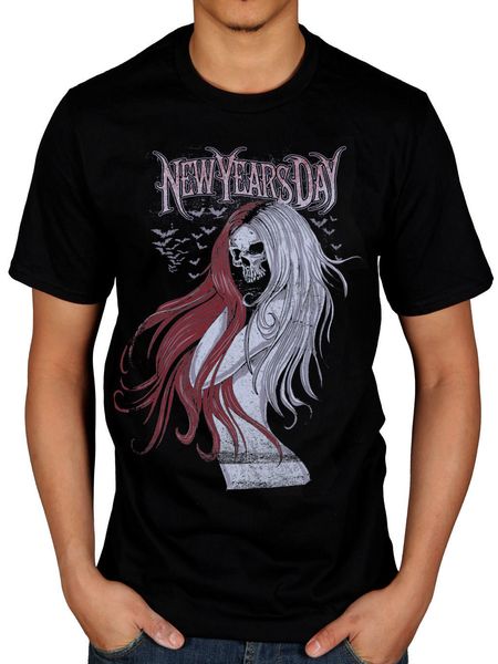 Grosshandel Offizielle New Years Day Lange Haare Schadel T Shirt